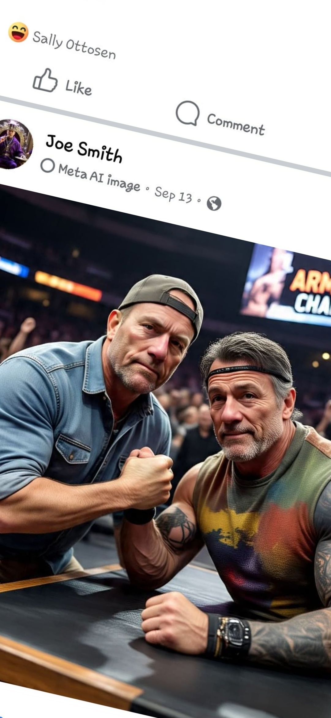 My boy Sly Stallone Best outta 5 on the arm wrestling.