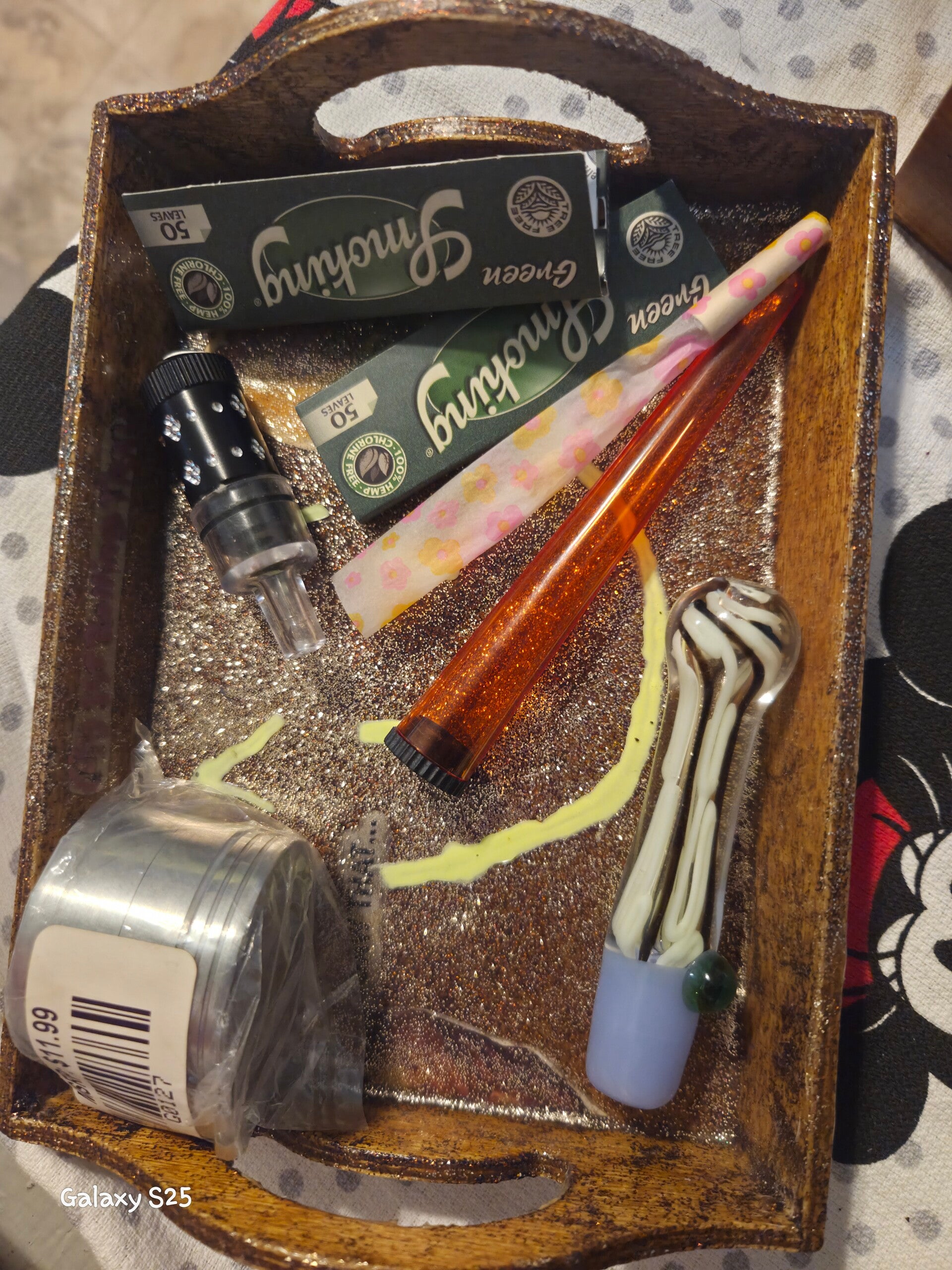 Sturdy, thick, decorative...cheap. shoot me a twenty and ill make a liile rolling tray kit just for you